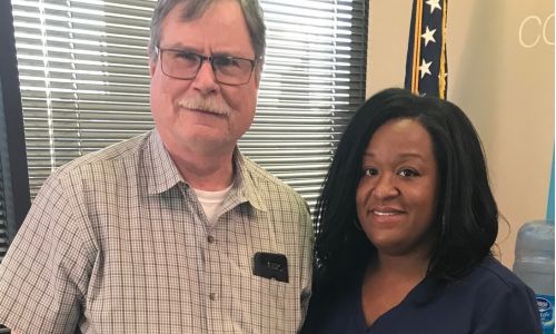 Pictured with Becca Grohler, Licensed Hearing Instrument Specialist, Chesapeake Office