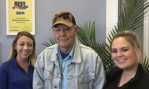 Pictured with Sarah Rozier, Patient Care Coordinator, and Becca Grohler, Licensed Hearing Instrument Specialist, Chesapeake Office